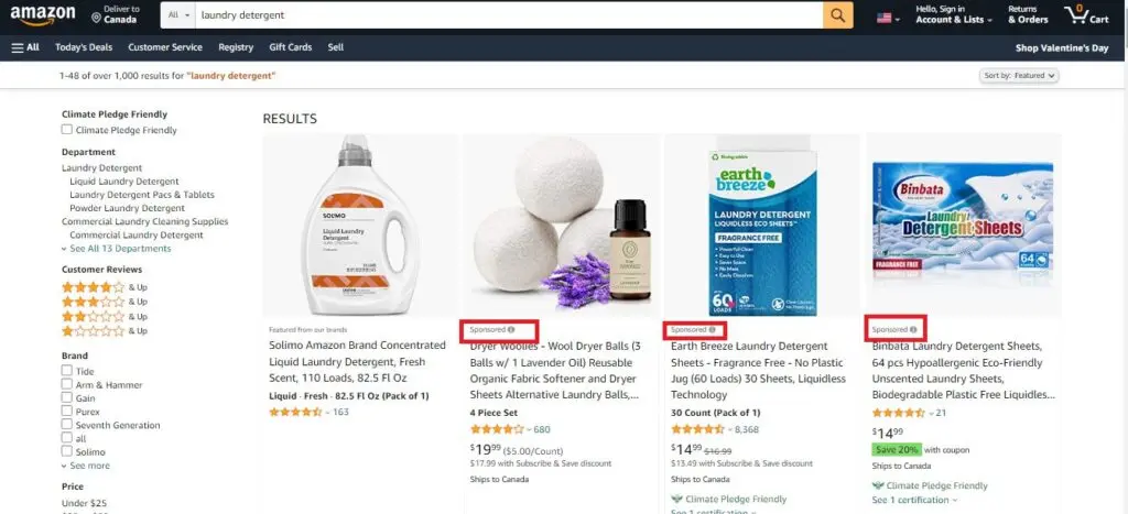 Amazon’s ads are highly targeted. If you’ve visited Amazon and did some product searches, you may have come across a row of results that mostly feature sponsored products. This is what marketers and brands are paying for: visibility.