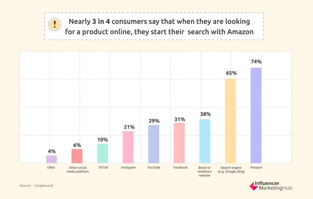 74% of consumers use Amazon as a starting point for their buyer’s journey, visiting the site to conduct their research. Furthermore, 56% of consumers in the US alone prefer to shop at Amazon, if placed in a situation where they would only be able to purchase products from one store.