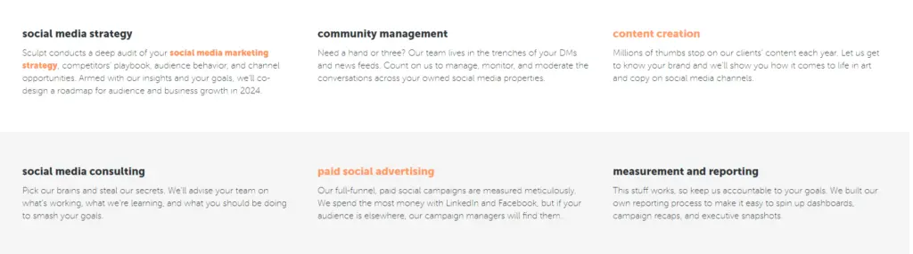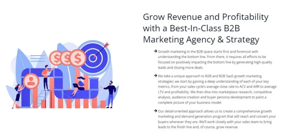 The agency's approach should align with your business goals. Whether it's lead generation, brand awareness, or market penetration, ensure they have the strategic depth to meet your B2B objectives and can demonstrate how they've achieved similar goals for past clients. They should be able to articulate a clear vision for your brand’s growth and provide a customized strategy rather than a one-size-fits-all solution. In the image below, you can see how one of the agencies from our list, ProperExpression, explains its B2B marketing services and strategies.