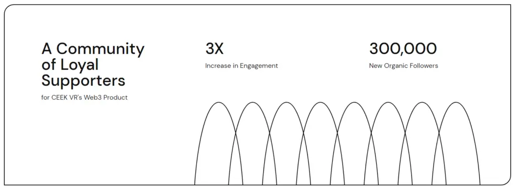 Let's take a look at a successful case study from NinjaPromo. In collaboration with CEEK, NinjaPromo produced videos to be shared across social media. The aim was to shed light on their new VR product. Thanks to their strategic approach to storytelling, NinjaPromo grew CEEK's social media followers by 300,000 while also increasing engagement but 3x and creating a community of loyal supporters.