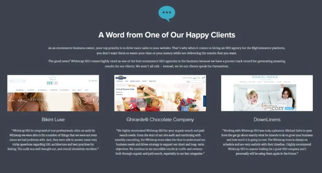 When selecting an SEO service for your BigCommerce store, it's crucial to choose a team that specializes in this specific platform. For example, Coalition Technologies is a certified BigCommerce marketing platform, a feat that enables them to understand the intricacies and unique features of BigCommerce in depth. Their certification indicates a high level of proficiency in utilizing BigCommerce's tools and capabilities to optimize your site's SEO performance. This expertise allows them to effectively navigate platform-specific challenges, tailor SEO strategies that are directly aligned with BigCommerce's framework, and leverage platform-specific features for maximum SEO impact. Another thing to look for is services with a proven track record of optimizing BigCommerce sites. Another example is White Cap SEO, as they have case studies showing potential customers their successes with the BigCommerce platform.