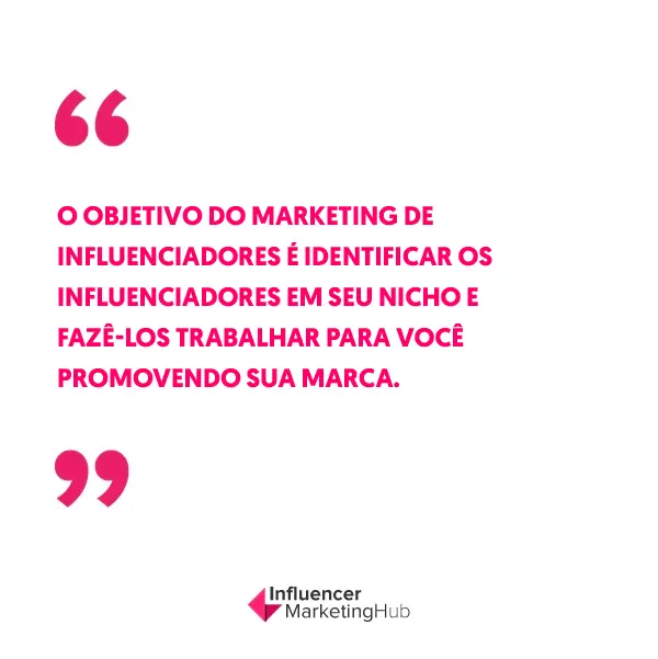 9. O objetivo do marketing de influenciadores é identificar os influenciadores em seu nicho e fazê-los trabalhar para você promovendo sua marca.