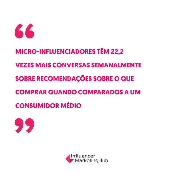 49. Micro-influenciadores têm 22,2 vezes mais conversas semanalmente sobre recomendações sobre o que comprar quando comparados a um consumidor médio