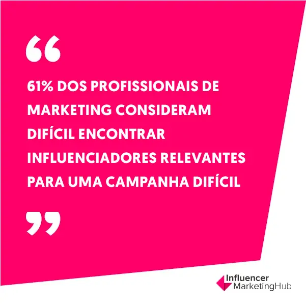 6. 61% dos profissionais de marketing consideram difícil encontrar influenciadores relevantes para uma campanha difícil