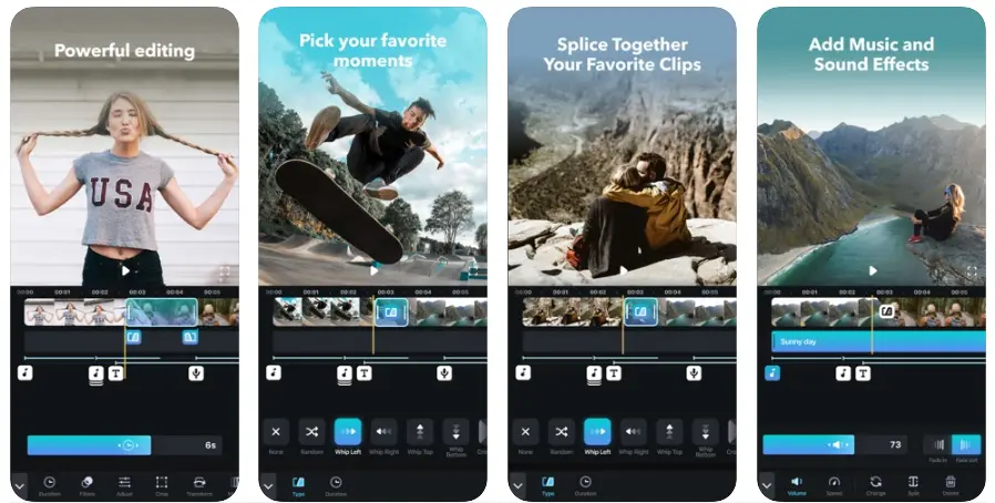 O Splice é uma ferramenta de edição de vídeo móvel GoPro. Ele vem com uma enxurrada de recursos valiosos que tornam a edição o mais fácil possível. Com o iPhone e o aplicativo Android, os usuários podem sincronizar vídeo com música, adicionar slides, sobreposições de texto e até mesmo outros clientes. Além desses recursos, você também é capaz de executar todas as ações padrão que se esperaria de uma ferramenta de edição de vídeo. Você pode cortar e controlar a velocidade entre a transição e até mesmo trazer fotos à vida com diferentes efeitos.
