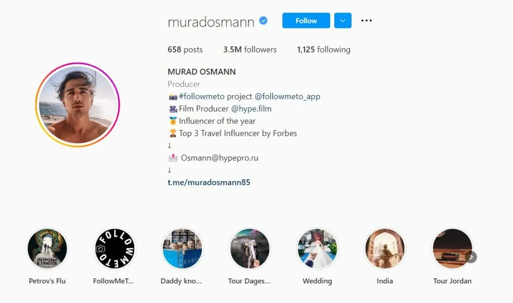 Ele usa sua conta do Instagram para publicar fotos vívidas documentando suas viagens ao redor do mundo.