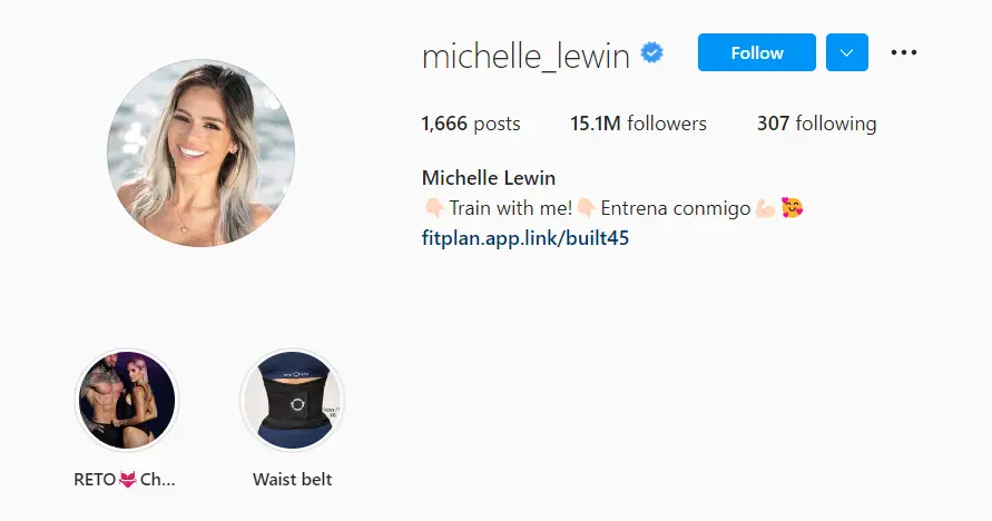 Inicialmente uma modelo venezuelana, Michelle Lewin é uma estrela do mundo fitness do sul da Flórida. Ela aumenta seu número seguidores em todos os seus canais de mídia social em impressionantes 20.000 seguidores por dia.