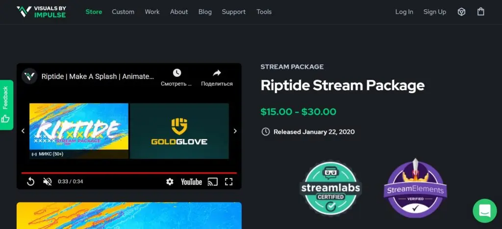 Visuals by Impulse é outro designer de temas e modelos para o Mixer, a Twitch e outras redes de streaming de jogos. Além disso, a maioria de seus produtos funcionam com Streamlabs OBS e StreamElements.