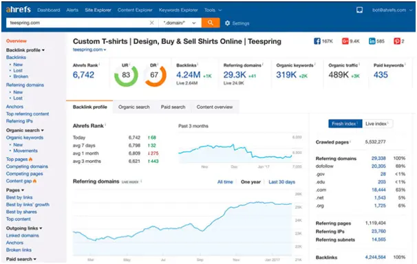 Aside from Social Mention, you can also use Ahrefs to conduct competitor research. This will help you monitor the competitors’ performance in terms of rankings and referring domains. So you can get a clear idea of how far off your client is and then develop a strategy to get ahead of the competition.