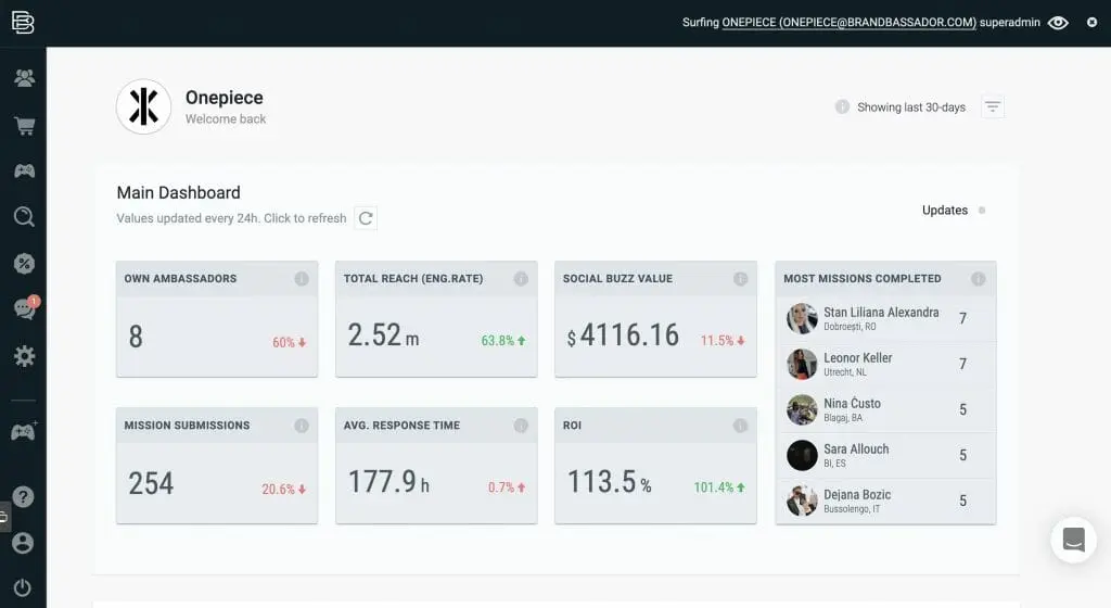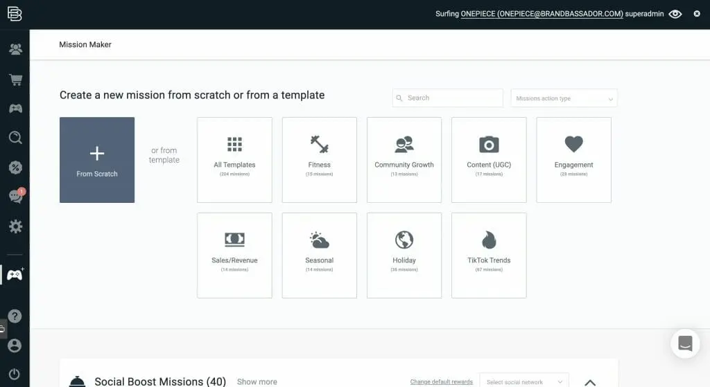 Normally, we’d like to see more insights here, especially around the audience. Psychographics and fraud detection are big deals at this stage of selecting an influencer, but we’re also not bothered that these weren’t included here. That’s because this isn’t traditional influencer marketing; you’re not striking individual deals with personalities. You’re not exchanging cash for content, you’re incentivizing your customers to refer their friends, family, and followers. Brandbassador doesn’t even call its campaigns “campaigns.” Instead, they’re called “missions,” and this is more than a semantic distinction.