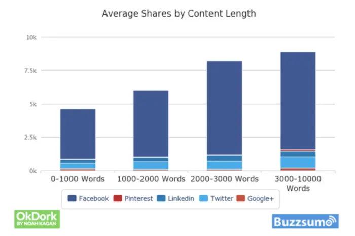 According to the findings, content with over 1500 words received over 5000 shares on social media. It attracted attention because it was viewed as a resource for readers looking for helpful information.