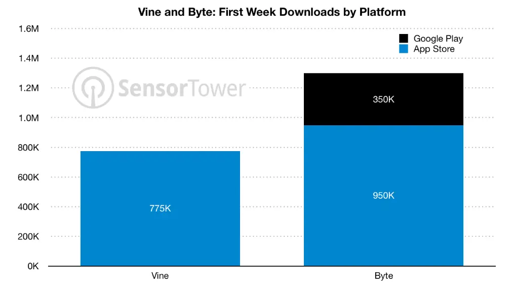 Byte got 1.3 million downloads compared to 775K downloads that Vine got in its first week after launch.