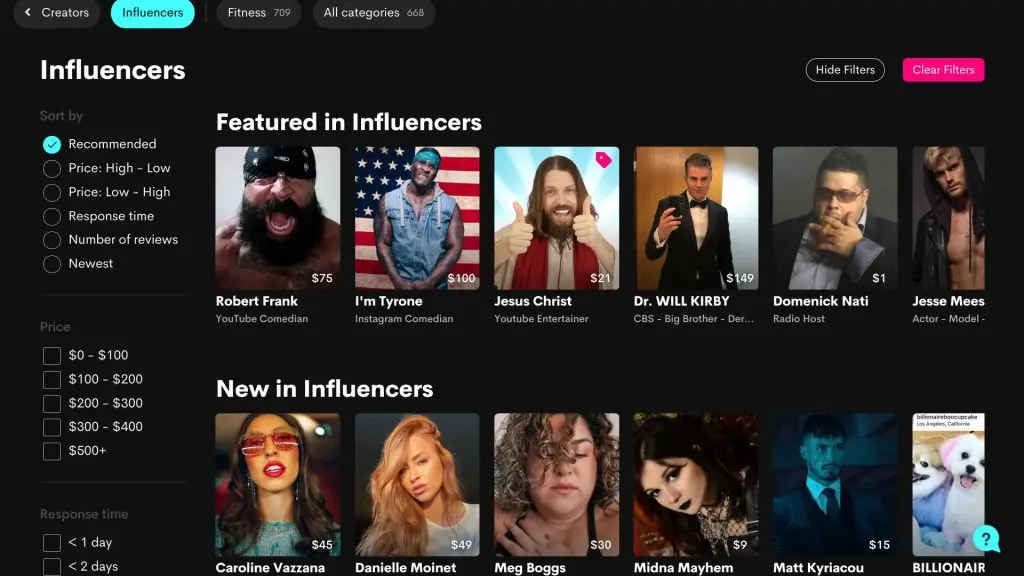 As for what you can earn, this is all dependent on what you charge and how often you want to do it. Cameo prefers the lower-cost, high volume transactions that would be the sweet spot of internet-famous influencers. Much as we’d all love Snoop Dogg (an investor in Cameo) to wish our loved ones a hizzle to the bizzle on their birthdays, the $1,000 price tag makes that out of reach for most of us. But the same video from YouTube sensation (and son of God) Jesus Christ would only set you back $21. At least He’s staying true to his “blessed are the poor” thing.