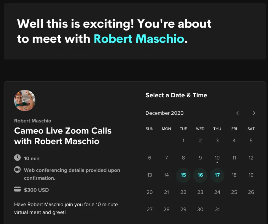 The 25% cut also applies to Cameo’s other revenue generating methods: private messaging, promotional Cameos for corporations, and 10 minute Zoom calls, the newest feature.
