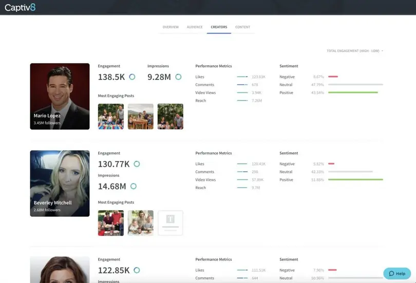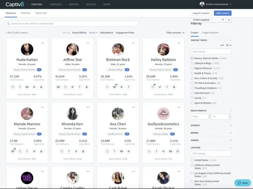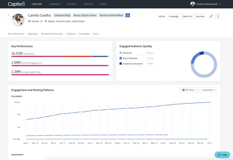 Over the years, Captiv8 added features to the platform such that it is now an end-to-end influencer marketing platform. The social listening feature is still prominent, and the AI is always working to catalog any bit of data it can see about the 1.5 million+ influencer in its database. Because Captiv8 has marketing and/or API partnerships with all of the social channels, their data gets to some very deep levels. But Captiv8 has rounded out the offering with Discovery, Campaign Management, and a Reporting/Analytics component—all of which combine to make it a top of the line platform and a standout in its class.