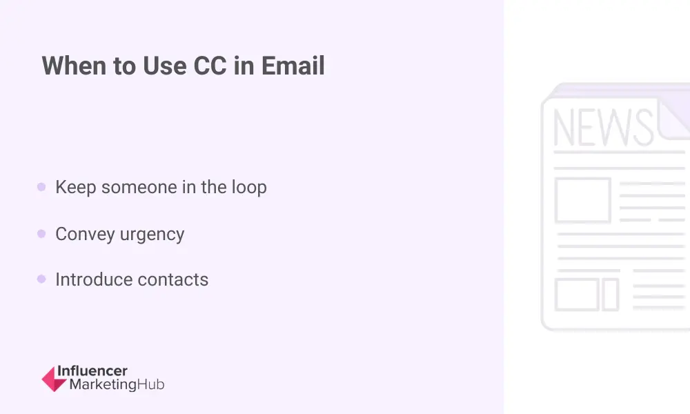 - Convey an email’s urgency: CCing higher-level employees in your organization signals the recipients in the To field that the content of the email is important