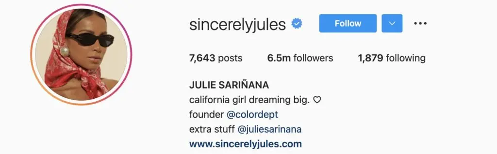 Julie is another fashion blogger who’s enjoying huge success on Instagram. On her blog, Sincerely Jules, that she launched more than 10 years ago she posts about her outfits, travels, and favorite products. She also shares beauty tips and tricks, like how to pull off tie dye and what to wear to a museum. So, you don’t need to be an influencer to find her blog posts valuable.