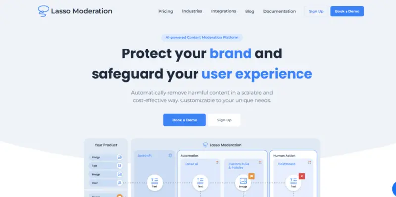 Their simple, scalable platform can help you with image moderation, video moderation, text moderation, image redaction, and video redaction. From determining your content rules to keeping track of how they get implemented, the platform can help you with all the steps.