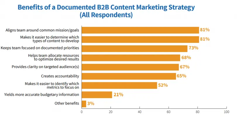However, only 39% of B2B marketers and 33% of B2C marketers have a documented content strategy. That is one of the reasons why only a quarter of marketers consider their content marketing to be more than moderately successful.