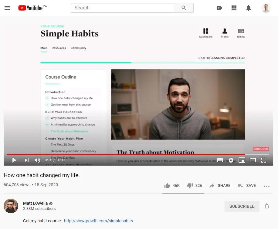 Use testimonials that give an honest review of how your courses helped transform the student’s world. Matt D’avela shares testimonials on his YouTube channel. His are clear, honest, and relatable.