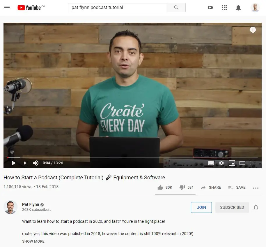 Pat Flynn created a course that teaches how to create a podcast. He uses YouTube to share content related to his course and attract new students.