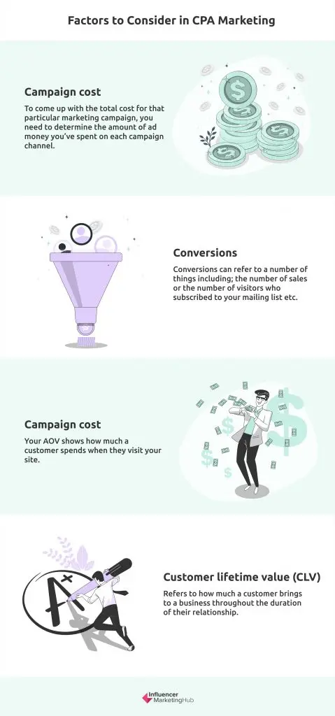 You need to consider several key factors when calculating the CPA to ensure that you’ll be able to analyze a CPA campaign properly: