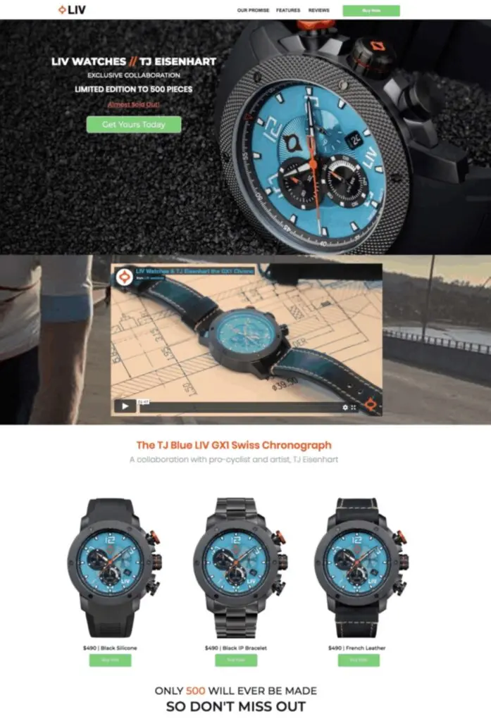 If your product boasts impressive craftsmanship, close-up photos can help your audience to see precisely what they will be purchasing. Just take a look below at how LIV Watches ensures that the photographs show off their watches in various ways.