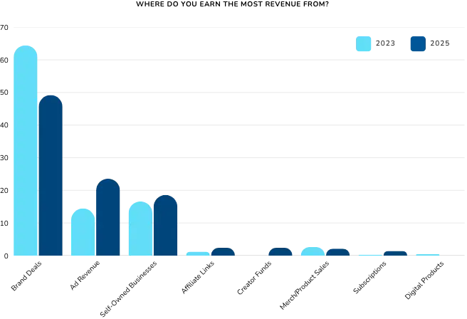 Over 49% of surveyed creators earn most of their revenue from brand deals.