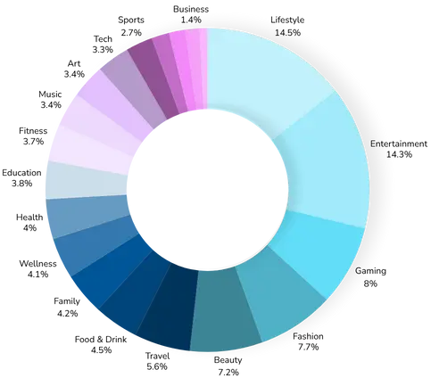 Creators selected which niche best represented themselves, and nearly 30% of them identified with lifestyle and entertainment.
