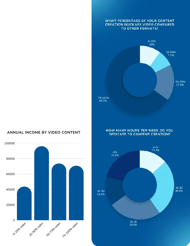 We asked creators to share two key details about their content workflow, the percentage of their content that is video-based, and the number of hours they dedicate each week to content creation.