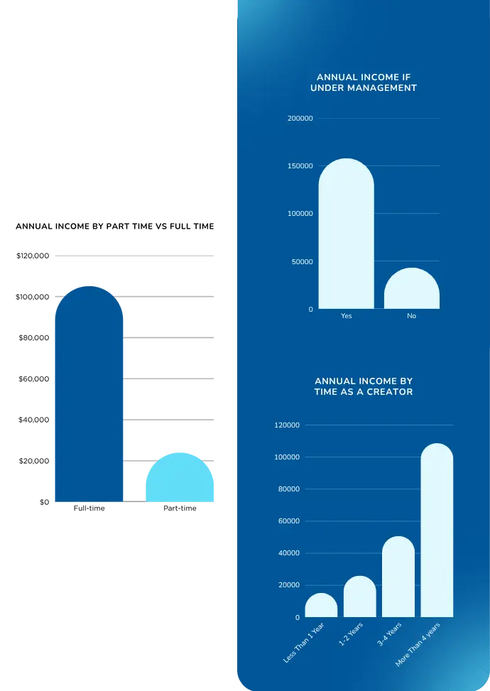 These distinctions between full-time and part-time creators, as well as managed and independent ones, influence not only how creators work but also their earnings, growth, and long-term sustainability. We’ll explore these dynamics in the sections ahead.