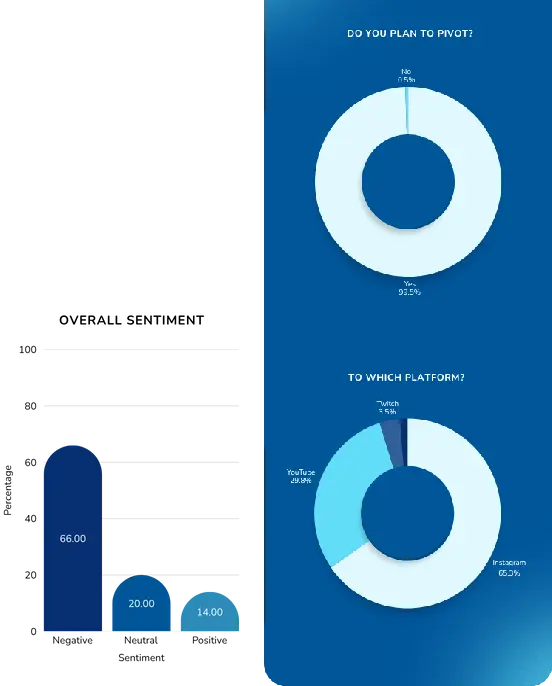 Nearly all surveyed TikTok creators have a plan to pivot if TikTok were to become banned in the United States. Most of which have Instagram as a ready backup, which makes sense as TikTok’s short-form video content Integrates most easily to Instagram Reels, and then subsequently YouTube Shorts.