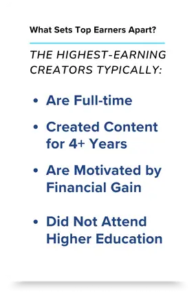 When analyzing earnings, a clear trend emerges. Those who utilize a mixture of video and static content were the highest earners. Utilizing both forms means that the creator is spread across multiple platforms such as Instagram and TikTok and isn’t siloed into one spot.
