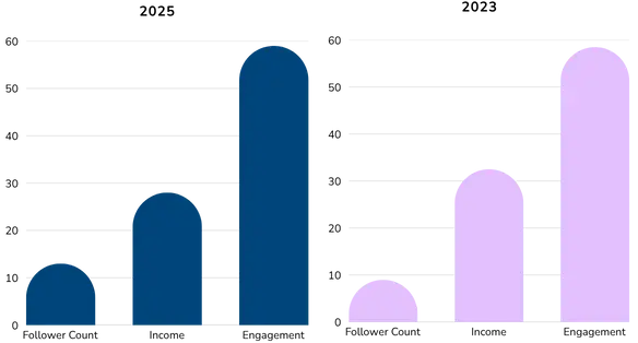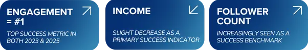 Through our data, we’ve found that engagement as a measurement of success has stayed nearly identical from 2023. Engagement best encapsulates the value of the content and its ability to connect with their community, allowing them to attract brands, receive sponsorships, and generate income.