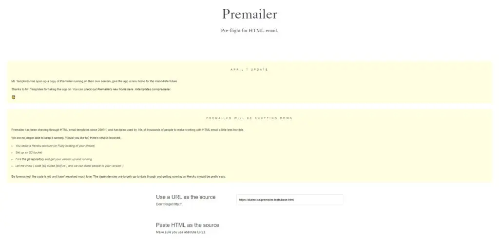 Premailer has provided a version of a CSS inliner since 2007. They have struggled to afford to keep it running in recent years, but Mr. Templates now makes Premailer's pre-flight for HTML email available. It asks for a URL as a source, or you can paste HTML as a source. It then asks for a query string to append to links. You can also select from various options before pushing Submit to prepare your code.
