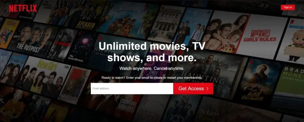 “Get Access” is a CTA that implies a bit of exclusivity. This CTA, combined with the rest of the copy on the page, lets users know that Netflix can offer them access to popular shows and movies that they aren’t going to be able to get anywhere else. Plus, the use of “cancel anytime” makes it even easier for users to say yes.