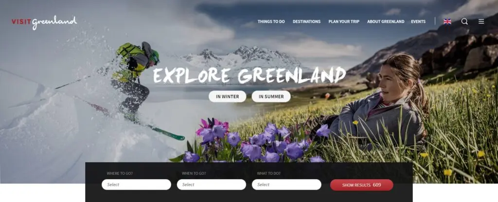 Here we’ve got two CTA examples from one site. Normally, having two calls to action is not recommended, particularly when they lead visitors to two different destinations. However, the two CTAs on the site make sense for a Greenland tourism site because Greenland in winter is quite a different vibe from Greenland in summer. It’s also a great way to start segmenting your list so you can send targeted emails based on when subscribers are thinking about visiting.