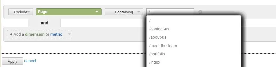 3. Select the “Direct Traffic” option and unselect all other items on the list. Then click on “Apply” to save the changes and apply “Direct Traffic” segmentation to all of your metrics.