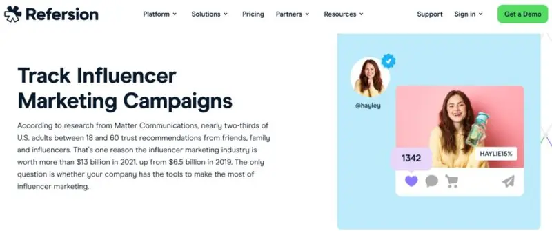 Im Gegensatz zu praktisch allen anderen Plattformen hat Refersion eigentlich sehr wenig mit Influencer-Marketing an sich zu tun, dennoch bietet seine Plattform das an, was die Branche braucht. Das 2015 in New York City gegründete Unternehmen beschreibt sich selbst als eine Affiliate-Marketing-Plattform, mit der Sie mithilfe Ihrer Influencer-Marketing-Plattform ganz einfach das eCommerce-Wachstum vorantreiben können. Wenn Sie also planen, sowohl mit Markenbotschaftern als auch mit Affiliates zu arbeiten, sollten Sie sich diese Lösung unbedingt ansehen.