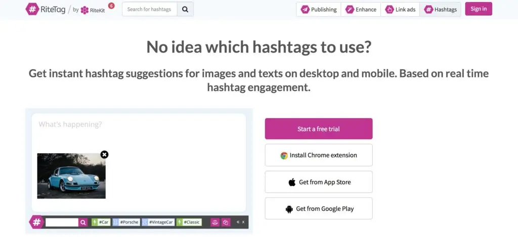 RiteTag er et af de mest unikke redskaber til at måle hashtags’ præstationer. Det er næsten som at have en personlig hashtag-træner. Efter at have registreret sig gennem sin Twitterkonto, vil man kunne se, om de hashtags, man har brugt i sine tweets, er relevante for én eller ej.