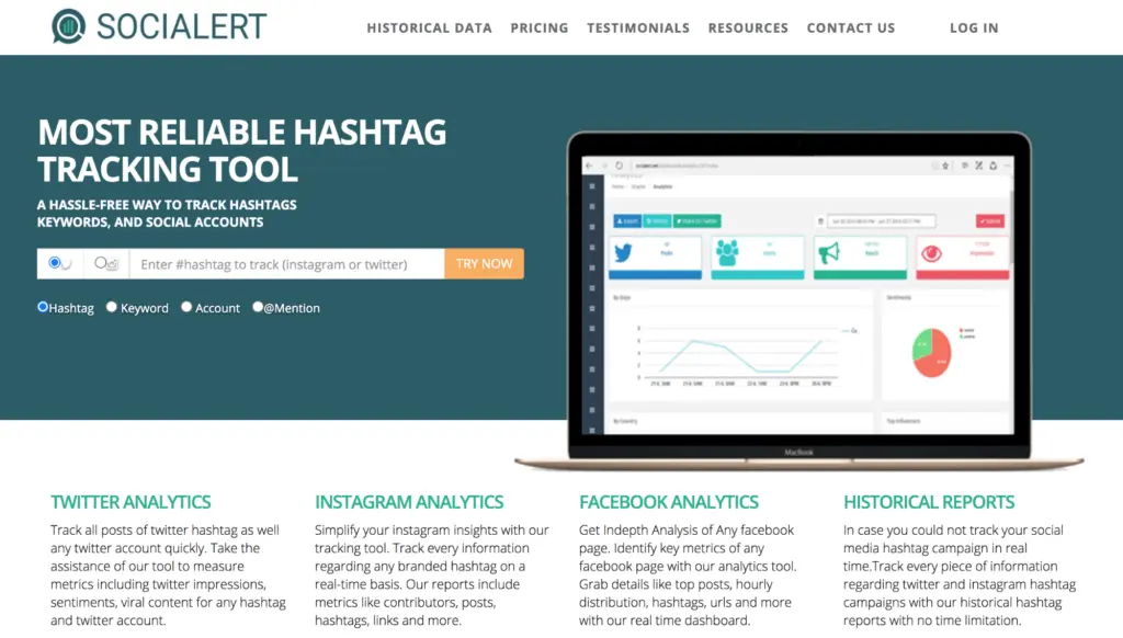 Socialert er et redskab til sporing af hashtags, som er nemt at bruge. Uden at skulle betale for noget kan man få et hurtigt overblik over hashtags-præstationer. Hvordan det virker? Nemt. Bare indtast et hashtag, nøgleord, @omtale etc., og redskabet genererer en automatisk rapport. Hver rapport vil give én en bedre forståelse af, hvad der virker, og hvad der ikke virker.