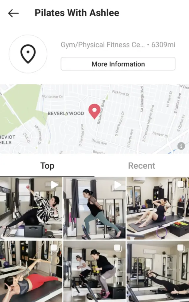 - Search by location for local businesses — an organic food store may look for gyms and personal trainers nearby to create promo integrations or sponsored content. To do this, open the gym’s location tag on Instagram’s Top tab and check out all the posts under this tab. Keep in mind, however, that you need to understand clearly who you are looking for and that not everyone specifies their location. This means that there may be an excellent nano influencer right next to you, but you won’t find them using this method.