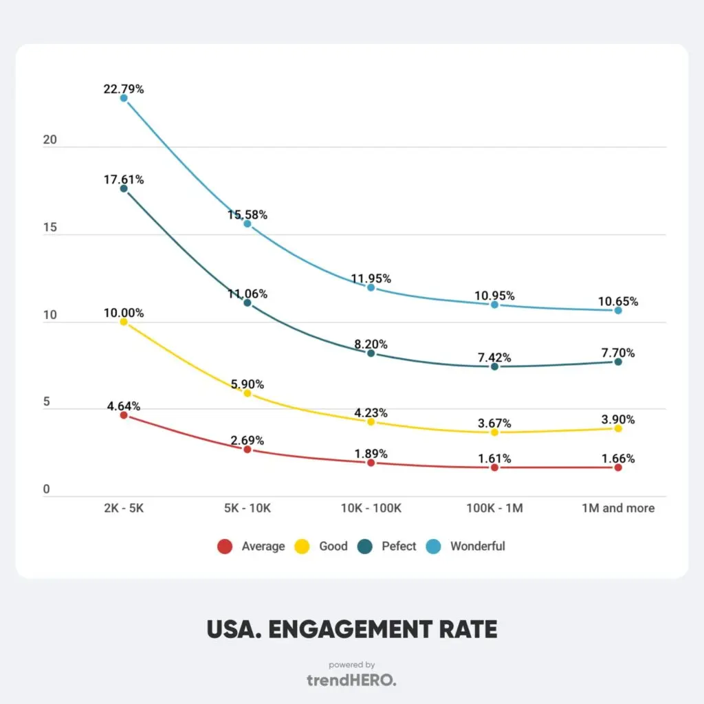 We already mentioned that an average ER depends on the number of followers. This is the primary reason why you should take a close look at micro influencers (or even nano influencers).