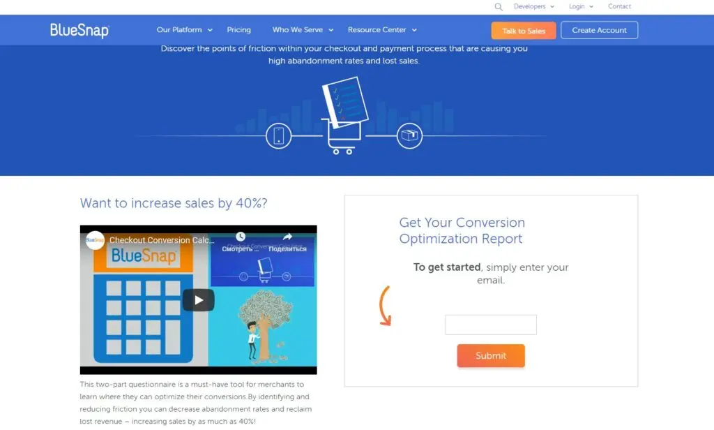 BlueSnap, in association with PYMNYS.com, has created the BlueSnap Checkout Conversion Calculator. This two-part questionnaire is a must-have tool for merchants to learn where they can optimize their conversions. By identifying and reducing friction, you can decrease abandonment rates and reclaim lost revenue – increasing sales by as much as 40%.