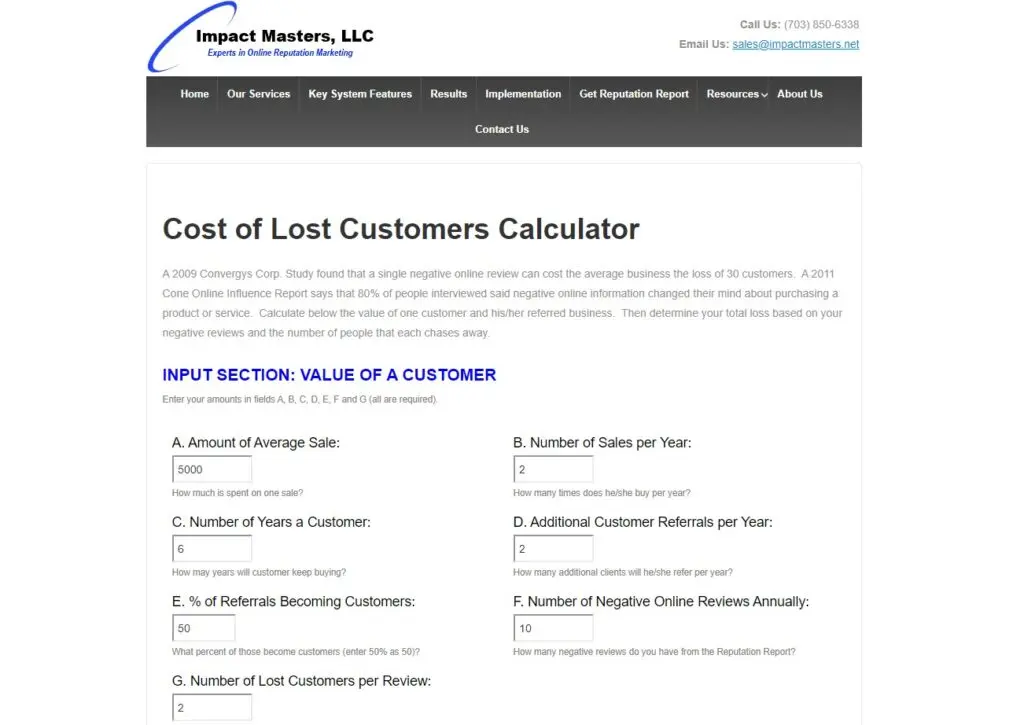 Impact Masters Cost of Lost Customers Calculator estimates the monetary cost of losing a customer.