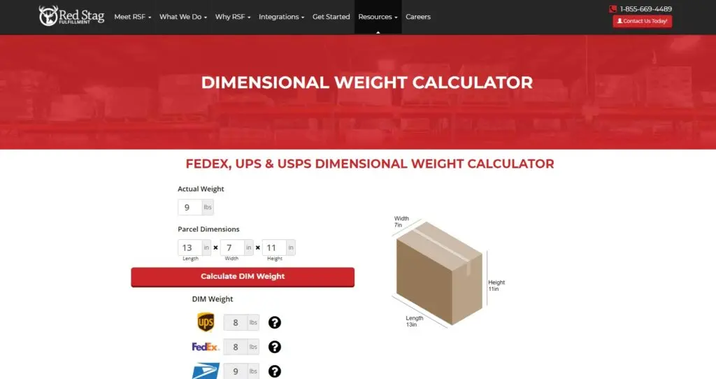 The Red Stag Dimensional Weight Calculator calculates the DIM weight for FedEx, UPS, and USPS.
