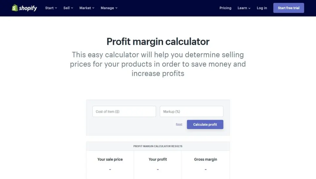 The Shopify Profit Margin Calculator can help you to determine the selling prices for your products to save money and improve profits. You can use this calculator, even if you do not use Shopify as your e-commerce platform. You just enter your gross cost for each item and the percentage of profit you would like to make on each sale. After clicking on “Calculate”, the tool will run your numbers through its profit margin formula to calculate the final price you should charge.
