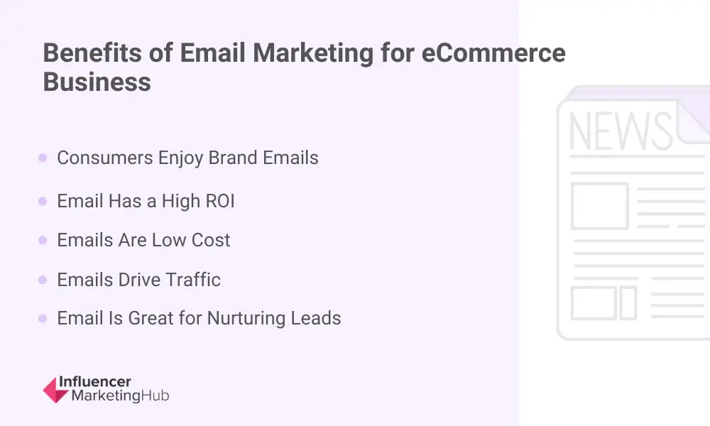 Email marketing is great for driving traffic to your website. Typically, eCommerce businesses will send emails to their subscribers to announce new products, promotions, events, and more. This, in turn, is a huge driver of sales.