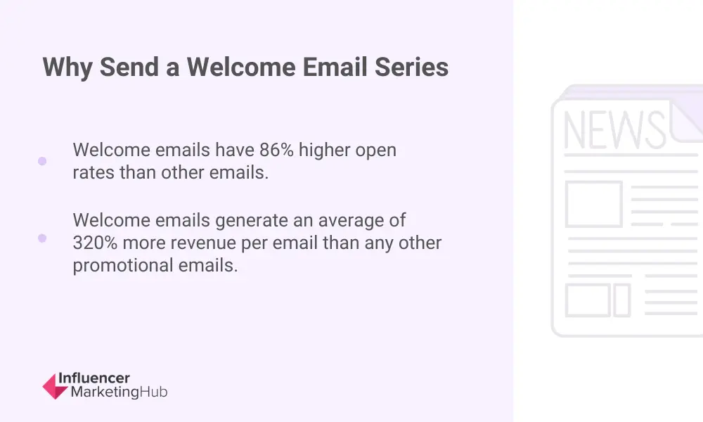Coming in at number two on our list of eCommerce email marketing tips is welcome emails. Did you know that welcome emails have 86% higher open rates than other emails? They also generate an average of 320% more revenue per email than any other promotional emails. Welcome emails can be a game-changer for your eCommerce business.
