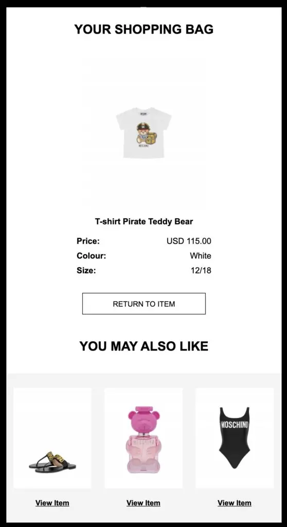 Promos and discount coupons remain a firm customer favorite, but these become even more effective when they are for a product category, such as children’s clothing, that a customer regularly browses. You can either display it as a pop-up notification or send it as a follow-up email.